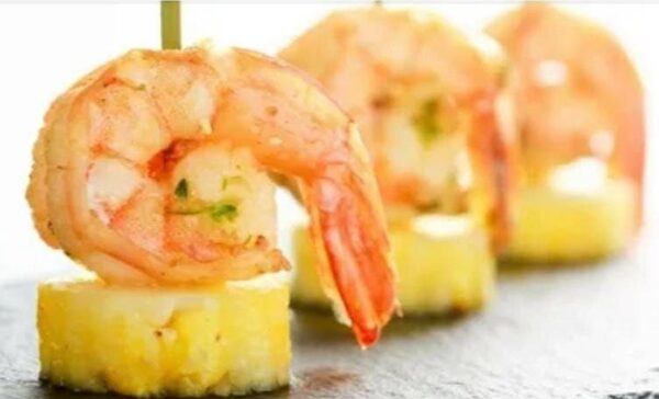 Канапе с ананасом и ароматной креветкой и мятой.